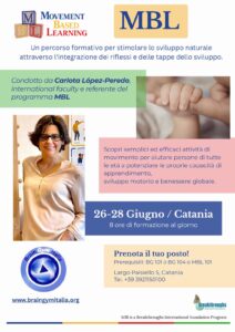 La nostra Associazione è felice di ritrovarsi con la dott.ssa CARLOTA LOPEZ PEREDO, referente internazionale del programma “Movement Based Learning”, ideato da Cecilia Koester, M.Ed.